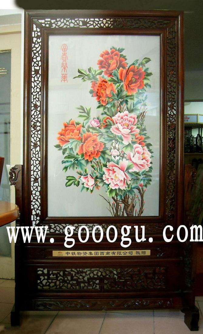 大型牡丹刺繡屏風(fēng)&雙面繡落地屏風(fēng)&單位開業(yè)慶典---嘉善藍(lán)森機(jī)械公司贈