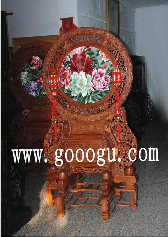 手工繡花牡丹地屏|圓型刺繡屏風|工藝屏風