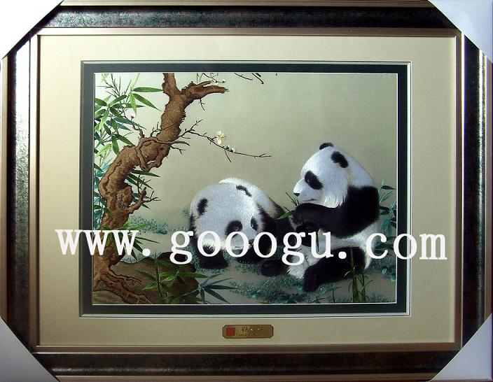 熊貓單面繡|動(dòng)物刺繡畫|手工刺繡畫