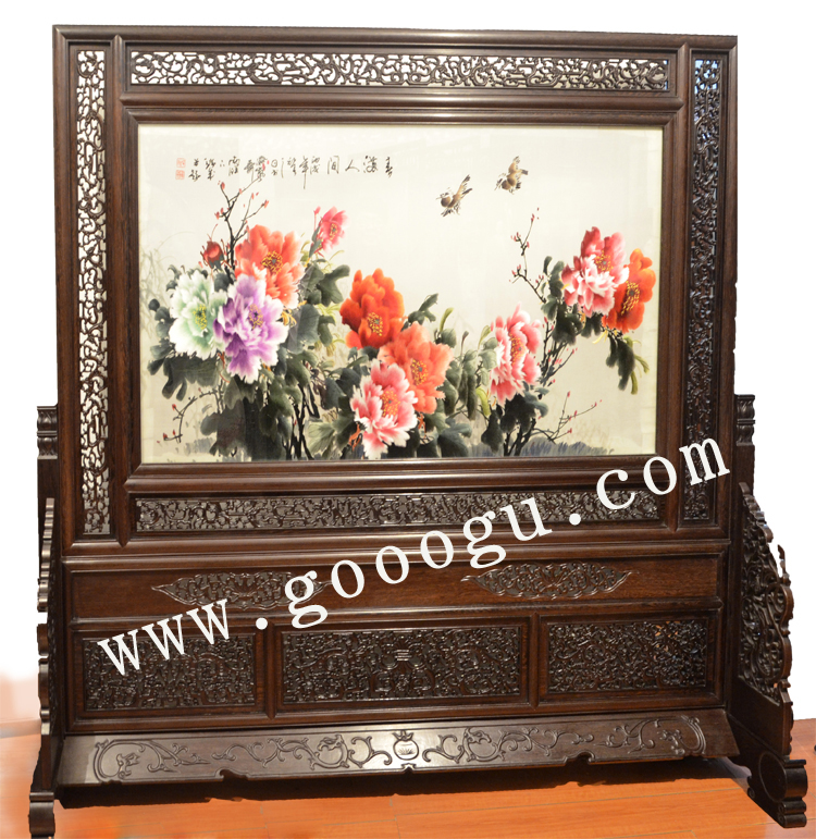 玄關(guān)家用屏風(fēng) 雙面繡屏風(fēng) 木質(zhì)玄關(guān) 榮華富貴牡丹圖