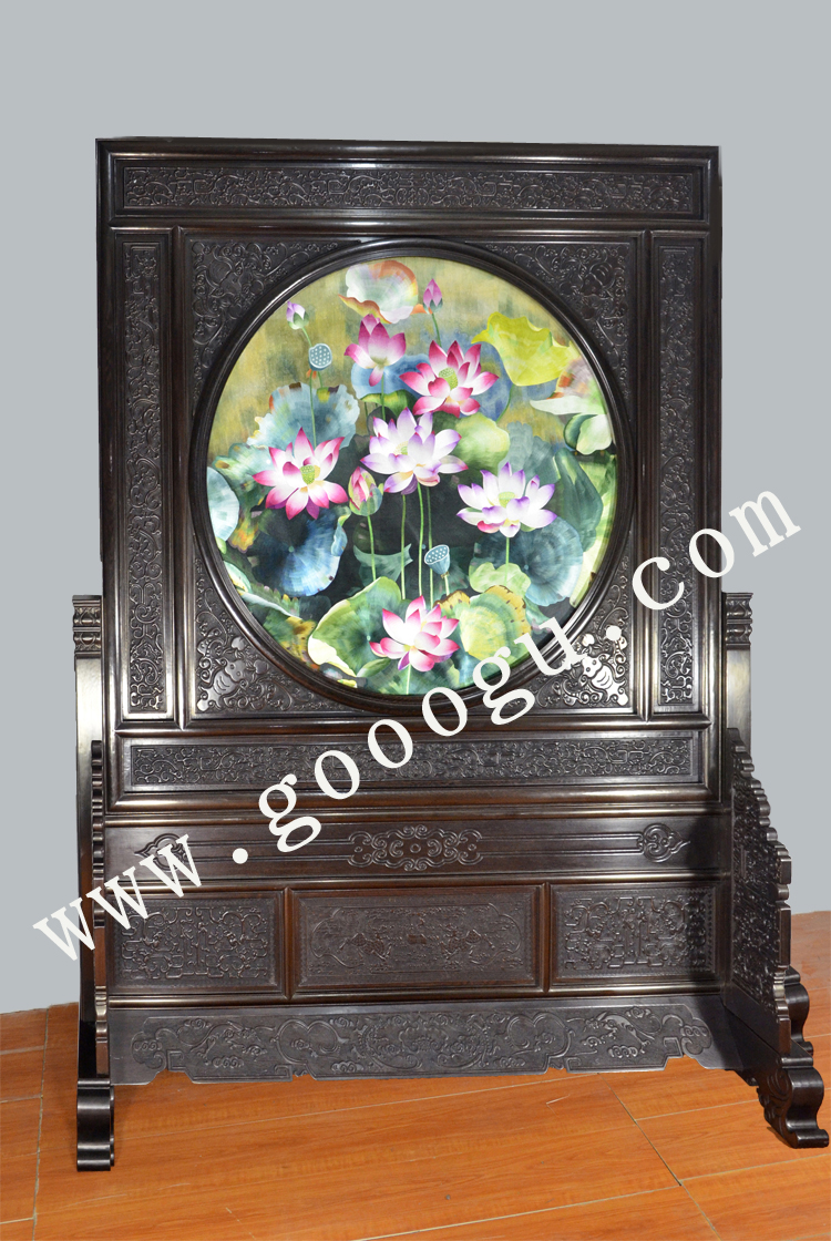 蘇繡工藝屏風(fēng) 中式裝修隔斷 家庭公司兩用玄關(guān) 荷花精品