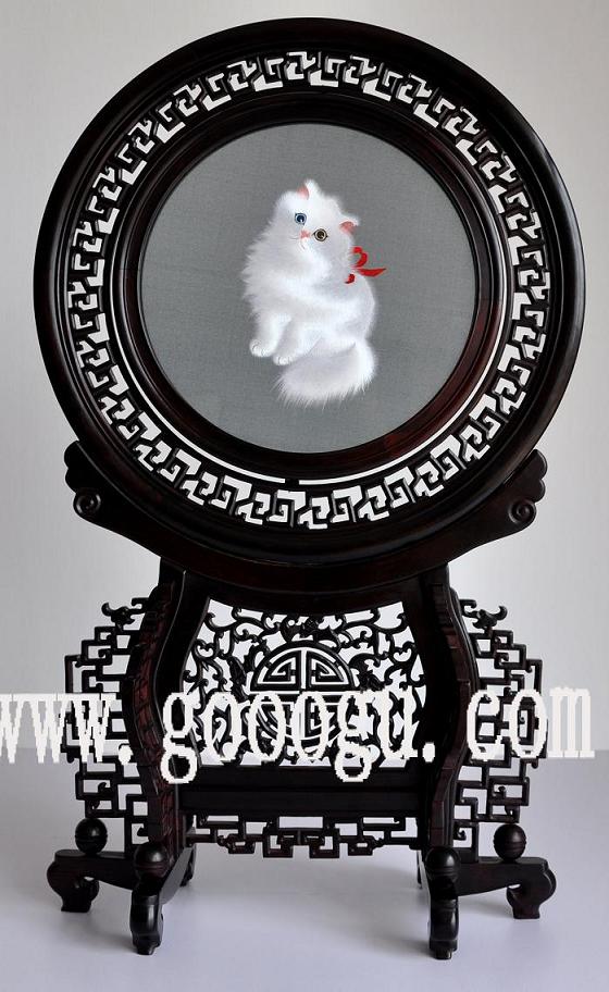 產品名稱:30圓蘇繡雙面繡 (作品代碼:SY-668) 產品規(guī)格:刺繡圖案尺寸 圓直徑30CM 外框整體尺寸最寬處46CM,高75CM 產品工藝:蘇州繡娘手工刺繡。繡品圖案部分可360度旋轉 產品材質:真絲面料+桑蠶絲線+玻璃+紫檀木架 產品包裝:錦盒禮品裝 嬌古出廠價:8800元/件 最小起訂量:1件----廠家直銷,可當天發(fā)貨(可混配圖案) 產品描述:【30圓檀木雙面繡】蘇州雙面繡為蘇州刺繡工藝師手工刺繡而成,木框為目前中國蘇州雙面繡材質紫檀,整體框架花紋雕刻細膩。圖案有花卉(牡丹,梅花,荷花,蘭花等),花鳥,動物(熊貓,老虎,魚等),山水,風景,名家字畫等。圖案多達一百多種,有古色古香的,有現(xiàn)代氣息的,高貴典雅,是贈送客人的特色禮品之一。