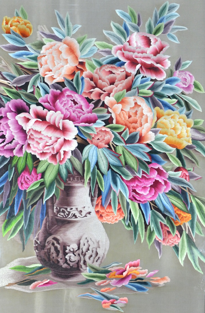 【產(chǎn)品名稱】:花瓶牡丹屏風(fēng) (作品代碼:P-1099) 【產(chǎn)品規(guī)格】:圖案尺寸為寬70cm,高110cm 外框整體尺寸寬130cm,高205cm 【產(chǎn)品工藝】:手工刺繡 【產(chǎn)品材質(zhì)】:真絲面料+雞翅木框+桑蠶絲線+玻璃 【產(chǎn)品包裝】:木箱包裝,用海綿包扎,確保運(yùn)輸安全 【出廠價】:18600元 【產(chǎn)品運(yùn)輸】:我司負(fù)責(zé)發(fā)往客戶指定地點(diǎn),蘇州附近城市可送貨上門! 【產(chǎn)品說明】:此款雙面繡屏風(fēng),是由蘇州工藝師耗時三個月精心手工刺繡而成,刺繡圖案以象征富貴平安的牡丹花瓶為題材繡工精細(xì),顏色搭配均勻過渡自然,整體給人舒適,愜意之感,屏風(fēng)的框架選用雞翅木為料,是蘇繡屏風(fēng)中的經(jīng)典作品。是家用玄關(guān)或辦公室玄關(guān)的禮品!歡迎親臨嬌古蘇繡展示廳觀看實(shí)物! 【作品欣賞】 .jpg)