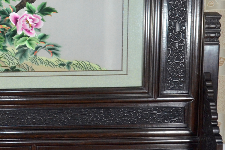 【產(chǎn)品名稱】:蘇繡屏風國色天香(雙面繡) (作品代碼:P-1104) 【產(chǎn)品規(guī)格】:圖案尺寸寬度70cm,高度110cm 外框整體尺寸寬145cm,高220cm 【產(chǎn)品工藝】:手工刺繡 【產(chǎn)品材質(zhì)】:真絲面料+雞翅木框+桑蠶絲線+玻璃 【產(chǎn)品包裝】:木箱包裝,用海綿包扎,確保運輸安全 【出廠價】:22000元 【產(chǎn)品運輸】:我司負責發(fā)往客戶指定地點,蘇州附近城市可送貨上門! 【產(chǎn)品說明】:此款雙面繡屏風,是由蘇州工藝師耗時三個月精心手工刺繡而成,刺繡圖案以牡丹花為題材繡工精細,顏色搭配均勻過渡自然,屏風的框架選用進口的雞翅木為料,是蘇繡屏風中的經(jīng)典作品。是企事業(yè)大堂或大廳的重要裝飾品之一!歡迎親臨嬌古蘇繡展示廳觀看實物! 【細節(jié)欣賞】 .jpg)