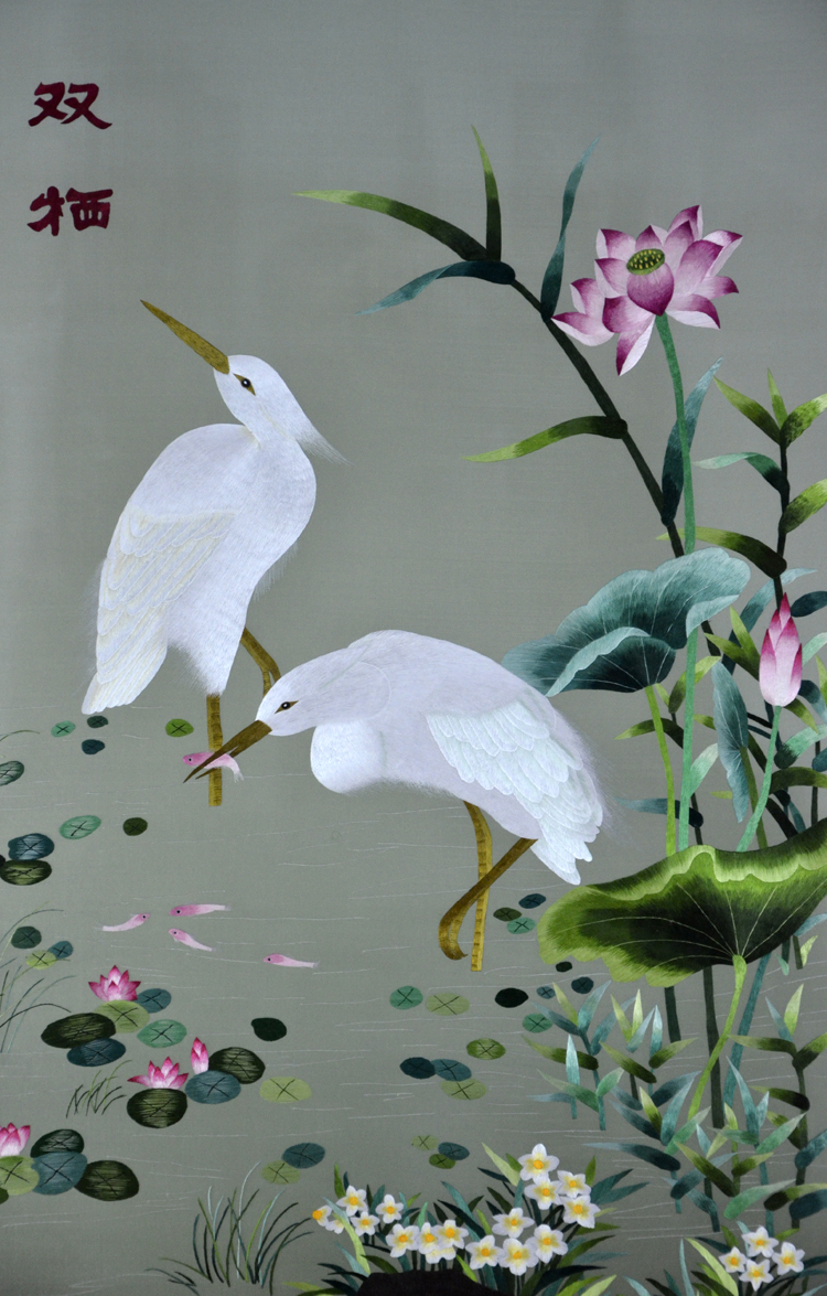 【產(chǎn)品名稱】:白鷺雙棲玄關(guān)(雙面繡) (作品代碼:P-1211) 【產(chǎn)品規(guī)格】:圖案尺寸寬度70cm,高度110cm 外框整體尺寸寬86cm,高168cm 【產(chǎn)品工藝】:手工刺繡 【產(chǎn)品材質(zhì)】:真絲面料+雞翅木框+桑蠶絲線+玻璃 【產(chǎn)品包裝】:木箱包裝,用海綿包扎,確保運輸安全 【出廠價】:12000元 【產(chǎn)品運輸】:我司負責(zé)發(fā)往客戶指定地點,蘇州附近城市可送貨上門! 【產(chǎn)品說明】:此款白鷺雙棲玄關(guān)雙面繡,是由蘇州工藝師耗時兩個月精心手工刺繡而成,顏色搭配均勻過渡自然,屏風(fēng)的框架選用雞翅木為料,此款蘇繡屏風(fēng)適合居家和辦公裝飾!歡迎親臨嬌古蘇繡展示廳觀看實物! 【作品欣賞】 .jpg)